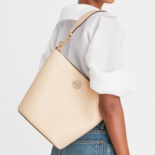 Tory burch US 现有 Tory burch MCGRAW 荔枝纹牛皮水桶包 奶酪白,原价$398,现特价$278.6(约2002元)。