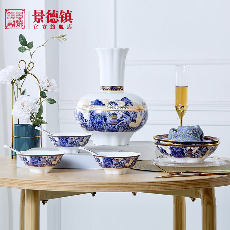 小程序好价返利 现有 景德镇官方陶瓷家用青花吃饭碗餐盘子组合中式餐具套装送礼盒装 ¥1580。