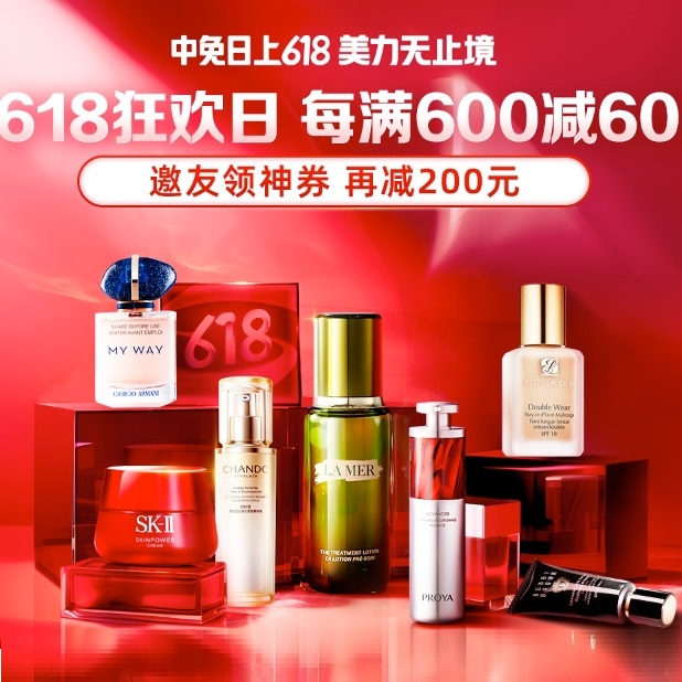 中免日上 现有 中免日上小程序:618开门红 每满600-60元+豪华满赠 可关注雅诗兰黛、海蓝之谜、SK-II等。