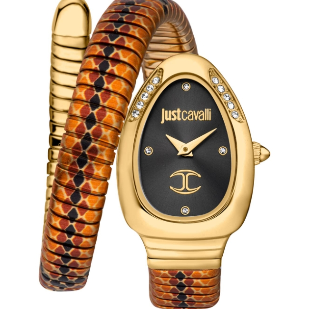 亚马逊海外购 现有 vintage爱好者必入!Just Cavalli 签名蛇皮独奏女式优雅石英手表时尚灵活手链单转不锈钢表壳, 银色, 时尚 到手约¥1904.69。