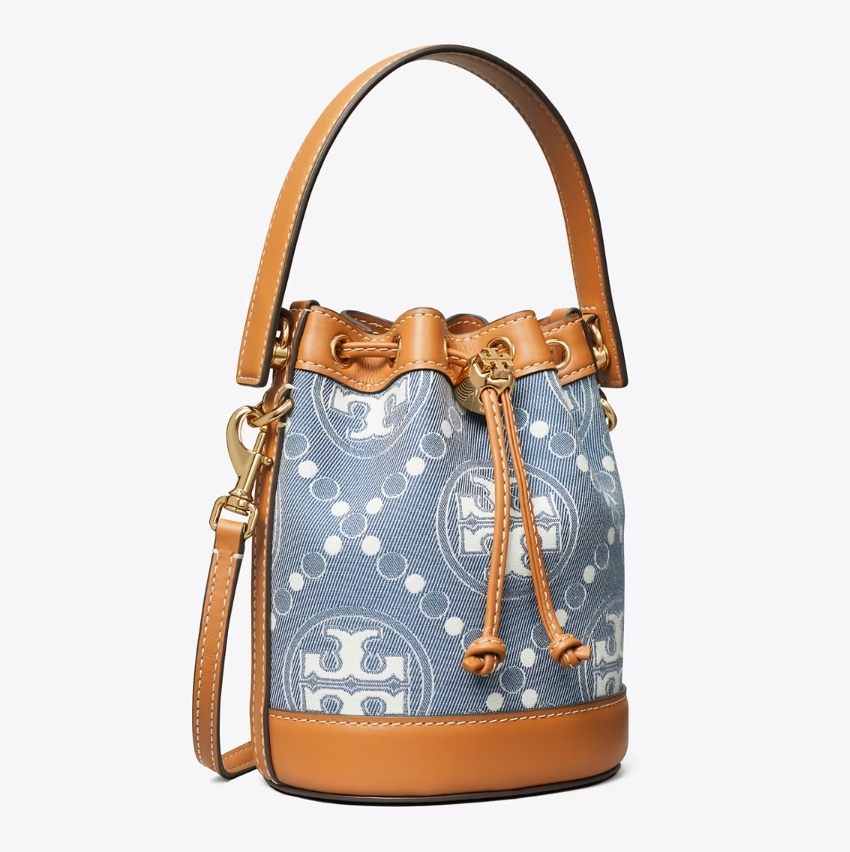 Tory burch US 现有 Tory Burch T MONOGRAM 老花单宁迷你水桶包,原价$368,现特价$261(约1856元)。