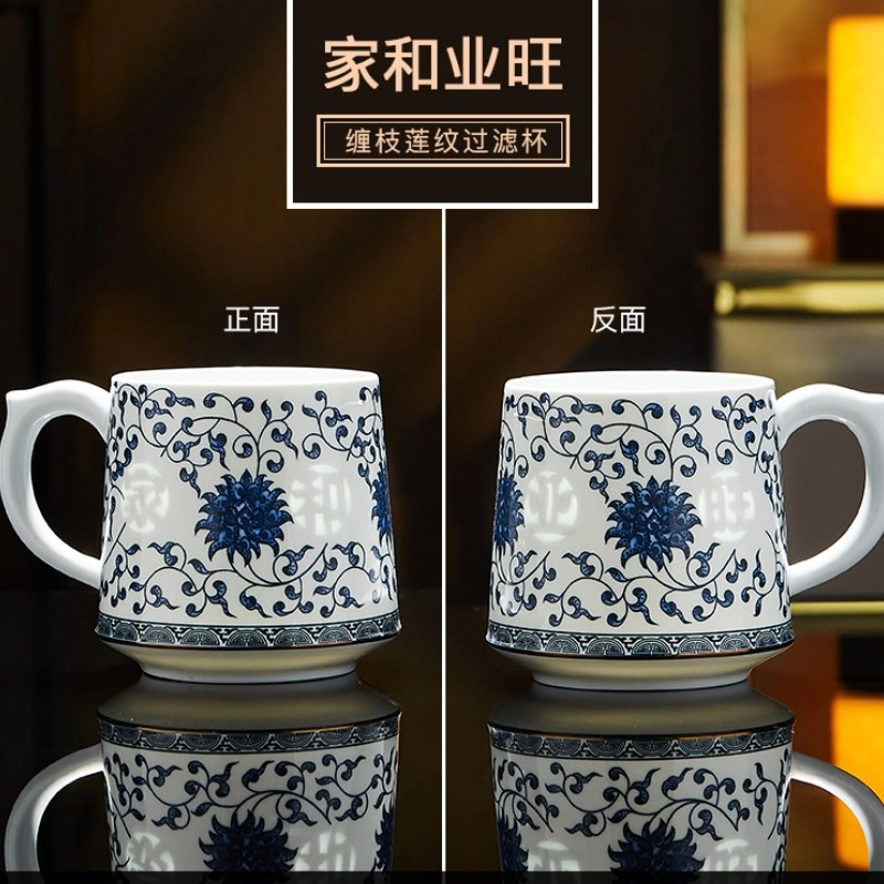 小程序好价返利 现有 玉柏玲珑 景德镇陶瓷茶杯 茶水分离杯 缠枝莲青花玲珑瓷器水杯 券后¥181。