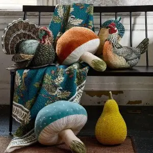 Target 现有 :John Derain X Target 新一波感恩节蘑菇和火鸡抱枕 $10起。