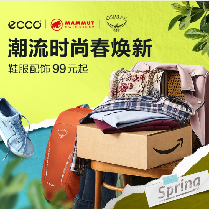 亚马逊海外购 现有 德亚潮流服饰、鞋靴春焕新 99元起 限时高返。