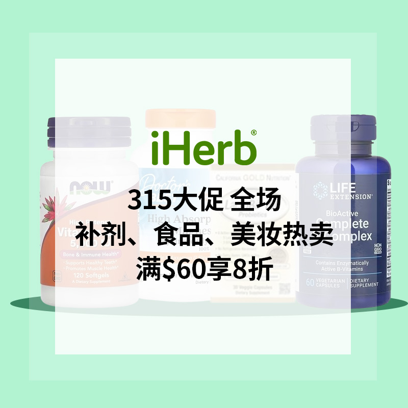 iHerb 现有 315大促!全场补剂、食品、美妆热卖 满$60享8折。