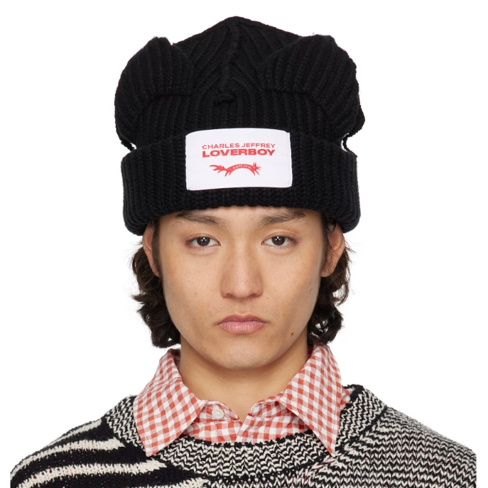 SSENSE 现有 Charles Jeffrey LOVERBOY 黑色 Chunky Ears 毛线帽,原价$95,现特价$71.25(约522.18元)。