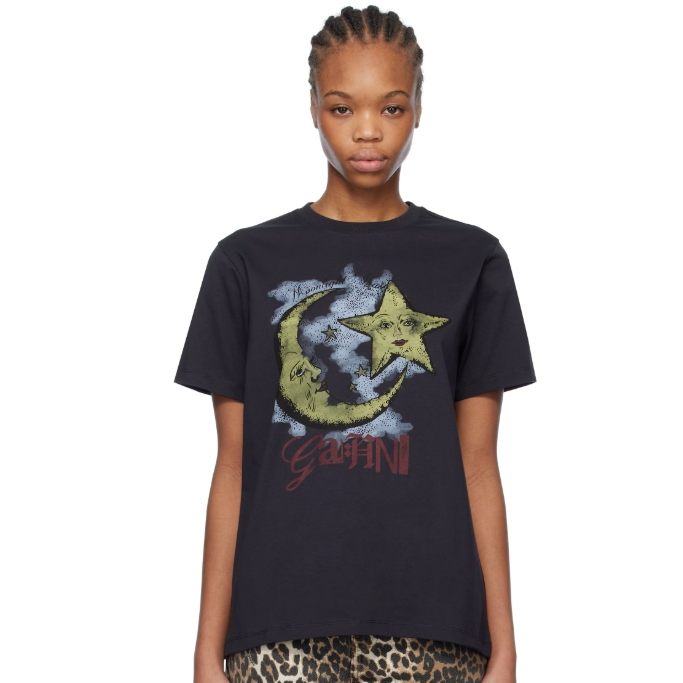 SSENSE 现有 GANNI 黑色 Basic Jersey Moonlight Relaxed T 恤,原价$145,现特价$108.75(约797.01元)。