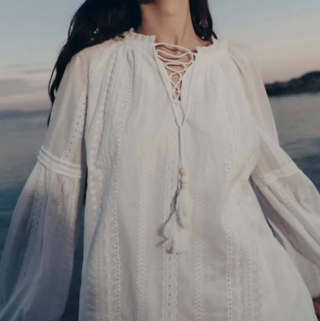 Fabrique 现有 刘亦菲同款!Fabrique Vicky 精致棉质巴里纱泡泡袖上衣,现价$218.00(约1570.58元)。