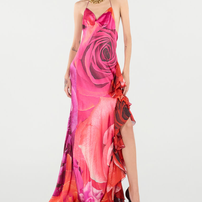 Roberto Cavalli 现有 Roberto Cavalli 玫瑰印花荷叶边连衣裙,原价$3395.00,现特价$1350.00(约9639.54元)。