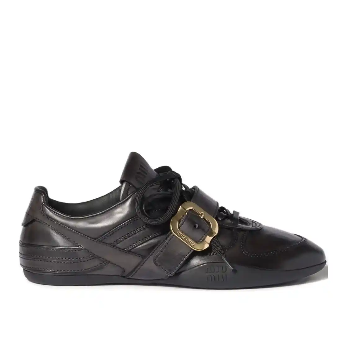 Farfetch 发发奇 现有 Miu Miu 扣环带皮质运动鞋,原价¥9750,现特价¥8775。