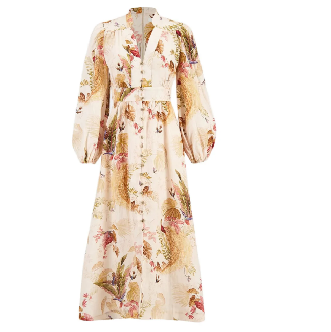 Eraldo 现有 Zimmermann 亚麻V领印花中长裙,原价HK$8174.00,现特价HK$4839.60(约4401.13元)。
