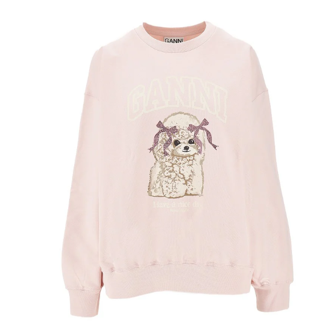 Rboutique 现有 Ganni 粉色小狗圆领卫衣,原价$332.00,现特价$265.60(约1854.98元)。