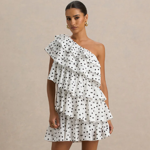 Club L London IE 现有 Club L London 波点不对称荷叶边连衣裙,原价€120.00,现特价€60.00(约480.86元)。