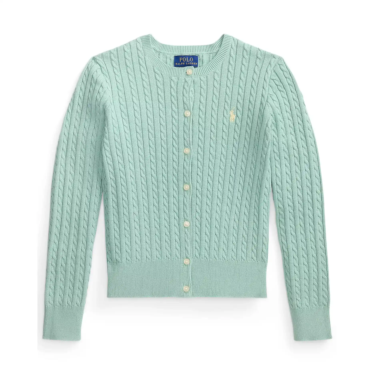Macy's 现有 Polo Ralph Lauren 拉夫劳伦大童款针织绞花开衫 薄荷绿/蓝色/玫瑰粉,原价$69.50,现特价$52.13(约359.85元)。
