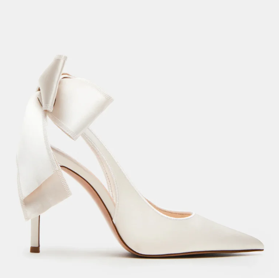 Steve Madden Canada 现有 希林娜依高同款!Steve Madden 白色缎面蝴蝶结高跟鞋,现价C$150.00(约753.91元)。