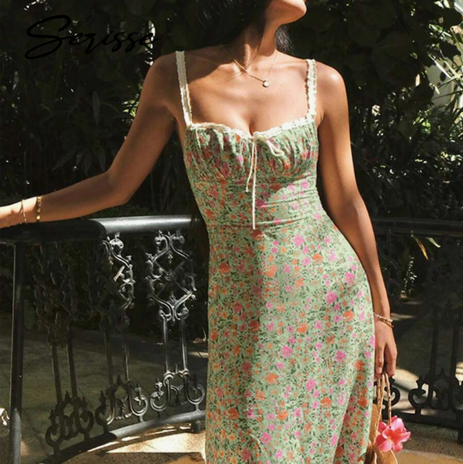 SHEIN Many GEOs 现有 Serisse 碎花系带无袖中长连衣裙,原价$85.45,现特价$10.07(约69.70元)。