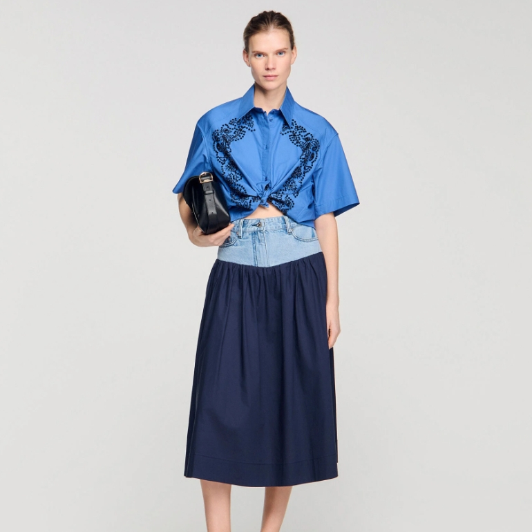 Sandro us 现有 碳酸同款 Sandro 花纹刺绣短款衬衫,现价$400.00(约2761.12元)。