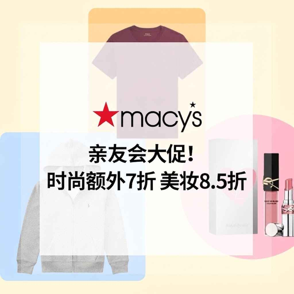 Macy's 现有 亲友会大促!时尚额外7折+美妆8.5折 入手拉夫、兰蔻、雅诗兰黛等。