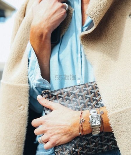 然而,这次5姐挖的这款,可是来自改变历史的手表系列~卡地亚坦克系列,从1917年诞生至今,经历了世纪美学的变迁成为经典,如今依旧保持着小方盘、罗马数字、蓝钢指针、表壳与表耳一体连接等经典之处,硬朗中带着流线优美。一百年来,Tank系列一直备受欧洲贵族女性的喜爱,这种古典的方形表盘似乎更能表达她们的气质,像杰奎琳肯尼迪、安吉利娜朱利、戴安娜王妃等都很爱它。全身18K白金,真真的低调奢华。20mm小巧表盘,表冠镶嵌一颗凸圆形蓝宝石,各处看都闪耀着迷人的光芒。还有石英机芯,耐刮蹭蓝宝石镜面。