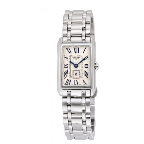浪琴DolceVita黛绰维纳系列专为热爱并向往意式甜美生活的优雅女性倾心打造,由甜美女神林志玲代言。这枚精钢玫瑰金的石英表采用长方形表盘,饰以精致雕刻花纹,精简的藏蓝色小两针搭配罗马数字时标,古典优雅,6点钟位置配有小秒表盘。非常有气质的款,价格也很美,不要错过~