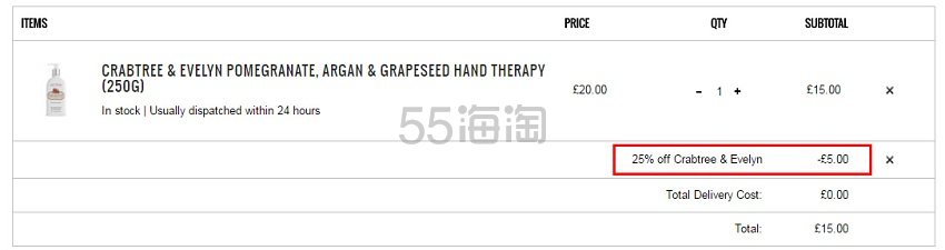 Lookfantastic 现有 Crabtree & Evelyn 瑰柏翠红石榴护手霜 250g,原价£20.00,现特价£15(约129元),需要使用优惠码:CRABX25 ,优惠随时可能失效,英国境内任意订单免邮。立即购买>>