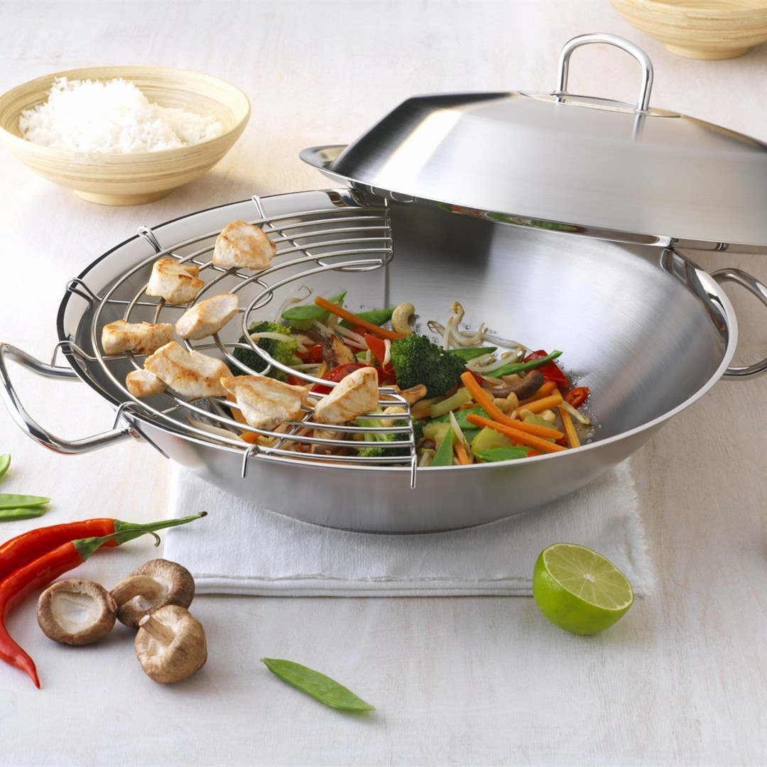 Fissler 菲仕乐这款 Original-Profi 雅格系列不锈钢平底炒锅采用优质不锈钢材质,质地轻盈,德国制造。配有金属盖,直径35厘米,非常适合少油温和煎烤。不锈钢金属手柄可牢固抓握,在烹饪、烘烤和煎炸时保持舒适握感温度。烹饪之星用铝质锅底,导热效果好,受热均匀,适合于电磁炉,燃气灶等所有热源,烤箱适用。