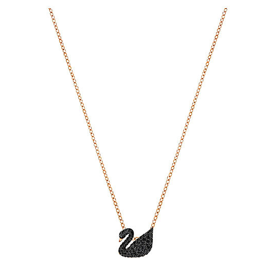 神秘黑天鹅,高贵迷人,独立优雅。这款施华洛世奇黑色水晶搭配镀玫瑰金项链,黑金搭配非常耀眼奢华,经典天鹅造型,华丽非凡,尽显女士优雅,尺寸 1x1厘米,项链长38厘米,可为上班或者休闲时的装扮增添迷人风采,国内外差价较大,建议大家海淘比较划算。
