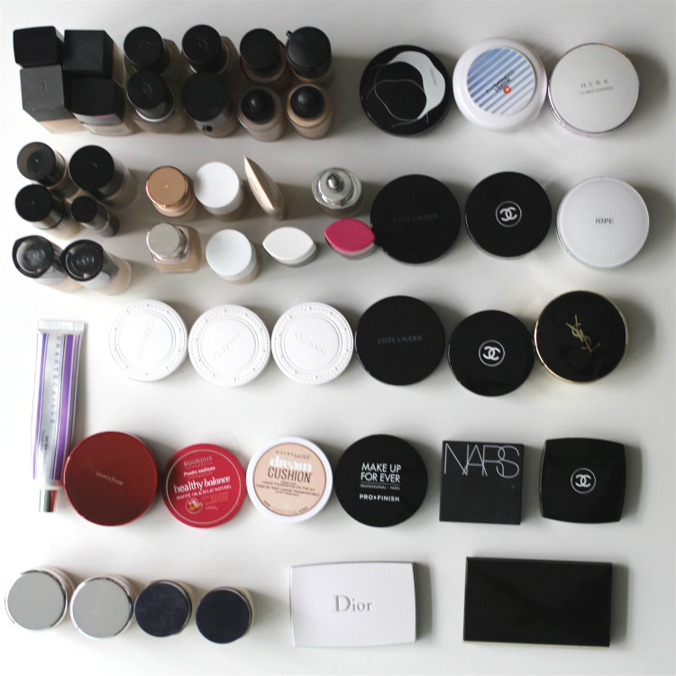 首先上一张全家福,从数量上来看,粉底液还是大多数5姐的底妆选择,其次就是各种补妆方便的气垫粉底和粉饼了。大家使用的粉底品牌也比较分散,目前看来没有唇膏类里面mac一家独大的状况发生,下面5姐就分品牌给大家展示下,过去一年大家都在用什么底妆。