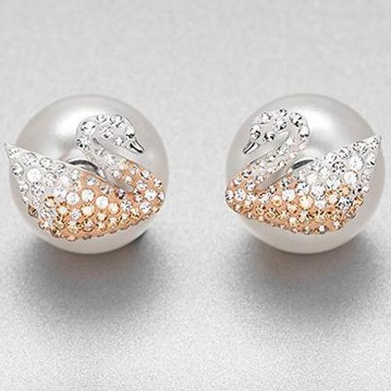 Swarovski 施华洛世奇一直都是很多女生倾心的扮美佳品,价格不会高得难以承受,款式又时尚、精致、高端、美丽,也是明星们出入各种场合经常佩戴的饰品。这款天鹅耳钉正面采用天鹅造型,小巧别致,上面点缀仿水晶石,低调闪亮,背面为珍珠造型,整体简约又不失优雅,尺寸为2.5*1cm。