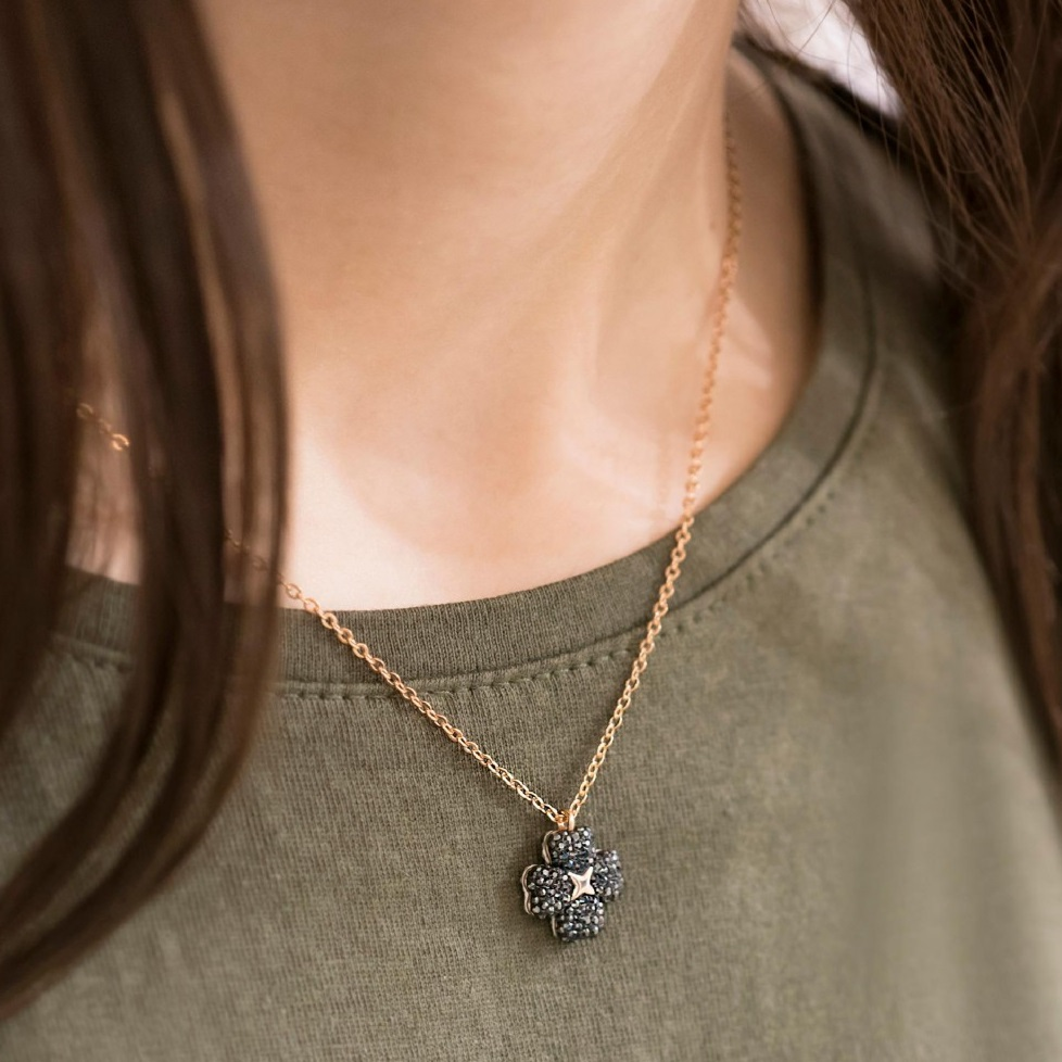 Swarovski 施华洛世奇玫瑰金链黑白两面四叶草项链很有大牌设计感,黑白正反两面佩戴选择增加了它的性价比和实用性。白色面小清新,黑色面低调奢华优雅,两色链子适合不同年龄段和不同肤色的人佩戴。四叶草的每一片叶子都有着不同的意义,希望每个人都能拥有名誉、财富、爱情和健康,做一个幸运的人。