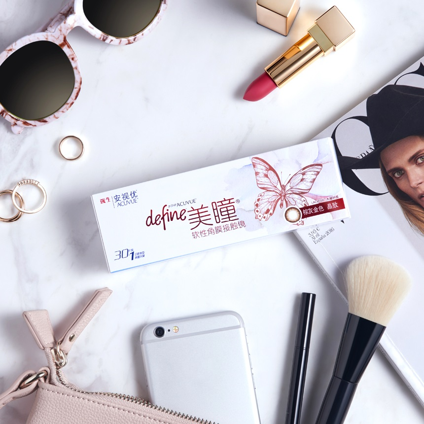 强生安视优 define 美瞳日抛彩色隐形眼镜采用仿虹膜设计理念与半透明*印染工艺增强立体感,清晰利落的边缘线使眼睛有神明亮。有效阻隔95%的UVB和70%的UVA,国际公认的高水平紫外线防护标准!基弧8.5mm,直径14.2mm,不挑眼的大小,戴起来瞳孔放大的效果很自然。