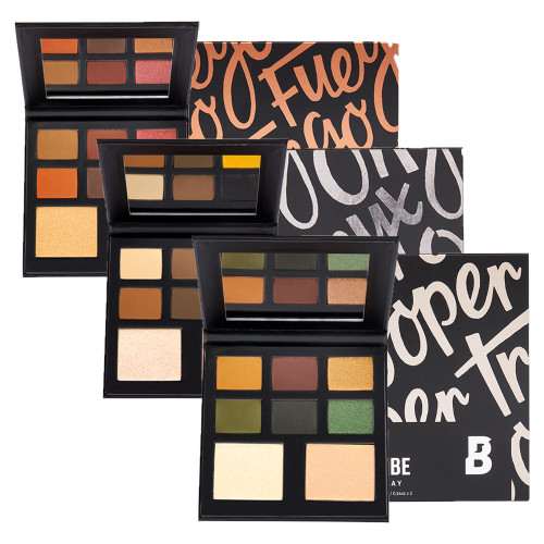 包装是轻巧的硬纸壳,里面是哑光质感的黑色外壳,拿在手里质感不错,还有附赠一些小卡片和贴纸,可以自由的装饰眼影盘外壳。logo 上带有一个B的字样是他家自营牌子的标志。