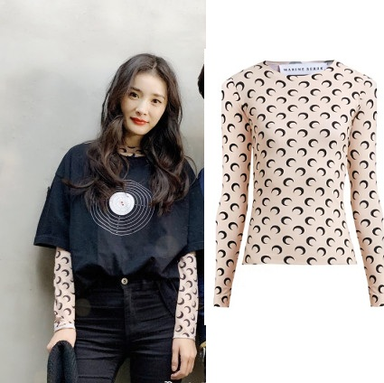 Matchesfashion.com 现有 杨幂同款 Marine Serre 月亮图案紧身上衣,售价价€184(约1241元),满200欧元免国际运费直邮港澳等。立即购买>>