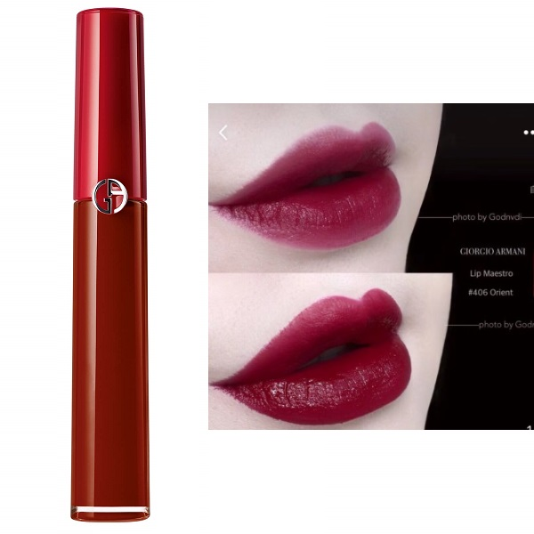 红管丝绒唇釉一直是阿玛尼的彩妆里面很受欢迎的一个单品,热门色号不打折的时候也常常断货,非常特别的半雾光妆效,神奇地兼顾光泽感和丝绒哑光质地,上嘴舒适,厚涂薄擦有不同的感觉。406号称是绝版色号201的替代色,是一个紫调姨妈色,高冷女孩需要入手一支。