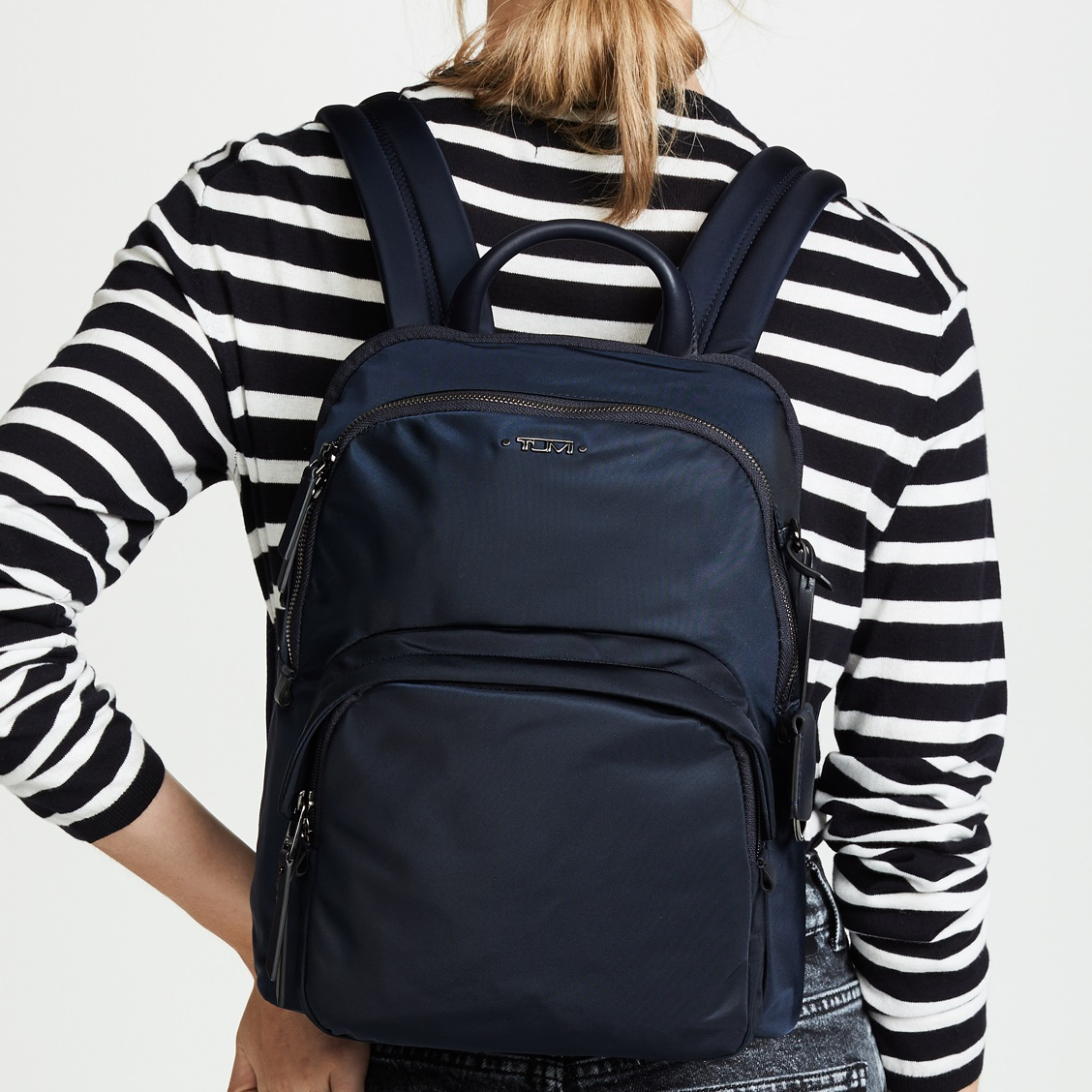 TUMI 这款尼龙双肩包属于畅销的Voyageur旅行家系列,抛去繁复口袋,整体线条更为圆润,金属拉链使背包更具时尚气息,大容量设定依旧是保持着tumi一贯的实用性,笔记本电脑隔层设计,拥有多功能口袋,你可以安心把电脑及其他物件装进背包,解放双手。