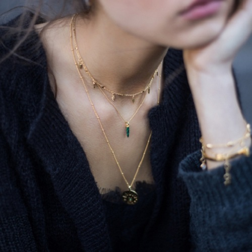 Missoma 18ct 这款镀金复古叶子颈链采用金色的配色,在链子上缀有相间的金色小叶子,是可调节式的颈链哦~能够很好的修饰你的颈部线条,拉长脖子,而且更能够给你的穿搭带来小巧思,非常的好看~可以叠戴或者单带,都能有不同的味道,气质中带着个性,酷酷又可爱,它家的饰品超多时尚博主佩戴的,真的很*入哦!