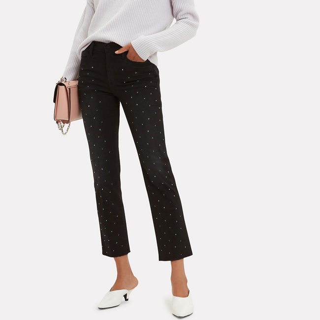 Intermix 现有 Frame 水晶铆钉装饰微喇九分牛仔裤 热卖,原价$325,现特价$129(约866元),无需用码,优惠随时可能失效,美国境内免运费。立即购买>>