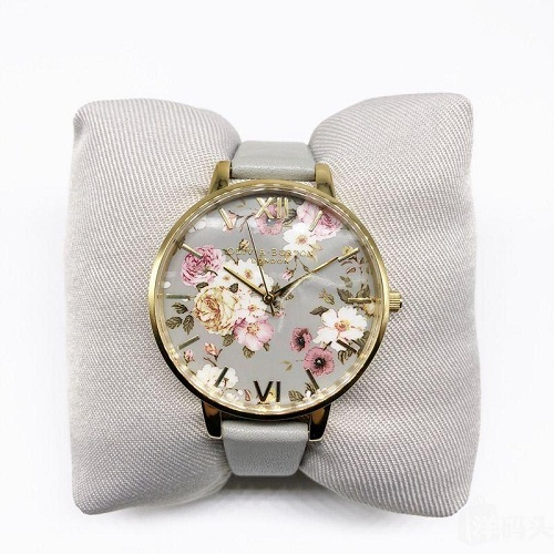 Olivia Burton 这款灰色花卉女士气质腕表采用镀金表壳,金色罗马数字和刻度标记加上指针标识,表盘上铺满花卉,浪漫又梦幻,搭配上灰色柔软的*表带,日常又百搭,而且小众腕表更是不容易撞款哦~显气质和品味,好看又很优雅~