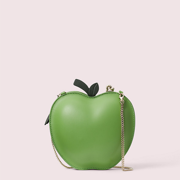 Kate Spade 凯特丝蓓这款 Picnic Apple 青苹果造型野餐包*近很火哦,英国官网还能买到!苹果造型超级可爱,特别适合春天野餐、夏天度假时搭配整体造型,包包size不大,拉链款,搭配金属链条,深绿色叶子和包面的圆弧设计细节满满呀!