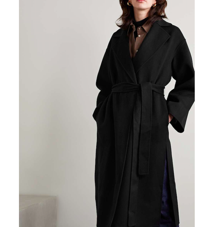 Net-A-PORTER 亚太站 现有 Theory 黑色系腰带羊毛羊绒外套,现价港币2010(约1642元)。