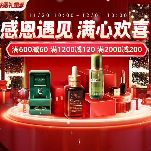 中免日上小程序:感恩礼遇季 全场满600-60/1200-120/2000-200元。